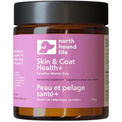 North Hound Life Atlantic Kelp Skin and Coat Health Plus Dog Supplement is 100% natural. This superfood supplement adds a boost to any diet, and is rich in potassium, iron, folate, iodine, fiber, and much more. Simply mix a small amount of this highly concentrated powder into your dog’s food and serve. Available in a 110 g | 250 mL recyclable glass jar.