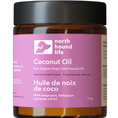 North Hound Life Organic Coconut Oil Dog Supplement is loaded with MCT’s, a lauric acid in saturated fats that has antiviral, antibacterial, and also antifungal properties. It can greatly improve digestion as well. Feed by mixing into your dog’s food, or use topically on skin ailments. Available in a 210 g | 250 mL recyclable glass jar.